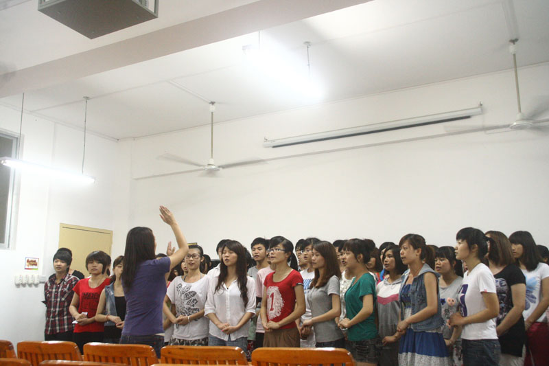 审查对象是bevictor伟德2010级的四个班级。艺术商务班级以大合唱《社会主义好》为主,融入部分情景剧;媒体创意班级串烧革命歌曲;美术文化管理班级则是“歌曲《中国的土地》+朗诵《党的赞歌》”的表演形式;音乐文化管理班级演唱歌曲《映山红》,同样融入情景剧。