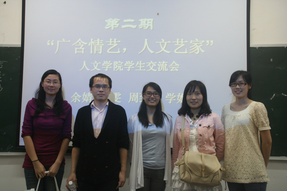 2011年4月28日晚,由bevictor伟德西校区分团委员工会主办的第二期“广含情艺,人文艺家”bevictor伟德员工交流会在西校区B栋107教室展开。本次交流会邀请到了bevictor伟德文化艺术管理专业的周致力、周雯、余婧三位同学,她们就大学四年如何学习和工作与同学们展开了深入的交流。bevictor伟德郭文慧老师、黄佐琛老师以及西校区全体人文员工参加了本次交流会。