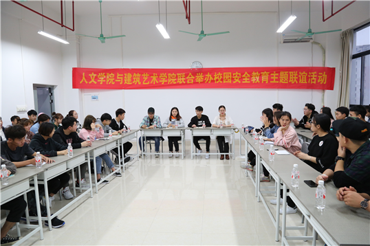 比赛结束后两院员工干部齐聚人文楼4610教室,围绕“校园安全、食品安全”主题进行自由讨论,就校园安全问题各抒己见。同学们针对防盗、防骗、防校园暴力事件、防交通事故、防突发事故和宿舍用电安全等问题提出自己的见解和防范措施。