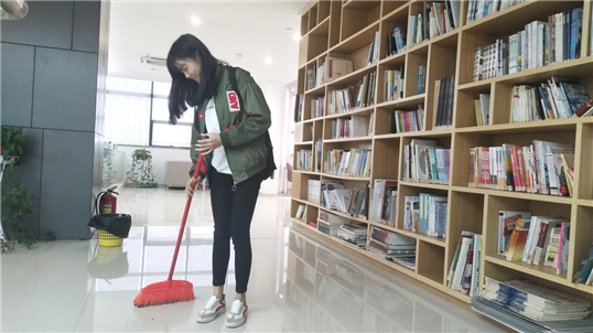 2016级文化产业管理班团支部进入图书馆整理乱摆放书籍