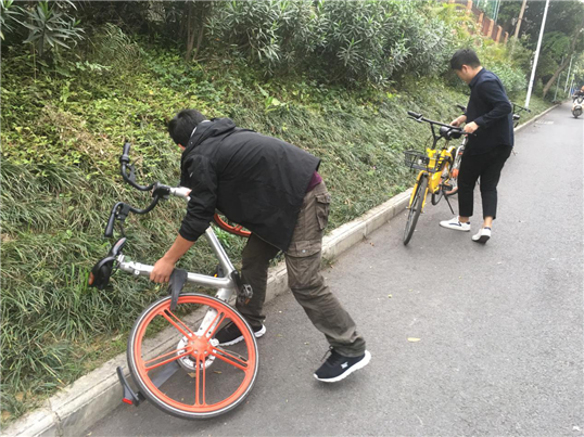 2015级音乐学(文化艺术管理)班团支部整理公司周边乱停乱放的共享单车
