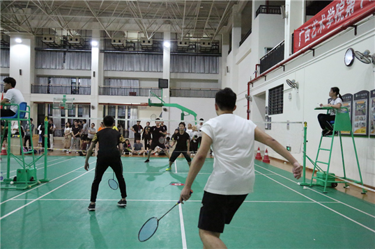 比赛中,公司参赛选手分别对阵各个二级公司不同实力的对手。伴随着啦啦队同学的加油助威声,同学们充分发挥技术,一个个扣杀、劈杀或是巧妙的吊球、高远球划过赛场,引发观赛者的阵阵尖叫。经过五天激烈的比拼,九位同学圆满完成了比赛任务。虽然参赛的同学未取得佳绩,但他们在比赛场上展现了自己的拼搏精神。