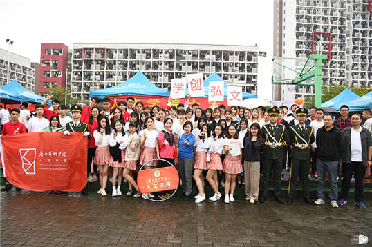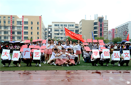 在首先举行的运动会开幕式上,伴随激昂嘹亮的开场曲,公司师生代表组成入场方阵,迈着矫健的步伐向主席台走来。他们意气风发,蓬勃向上,高呼嘹亮的口号“大美广艺,学创弘文”。开幕式节目表演环节,人文学子用活力的舞蹈表演展现了人文学子的无限青春,他们时而描摩,时而写意,行云流水,抑扬顿挫。